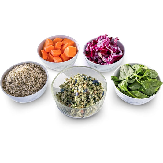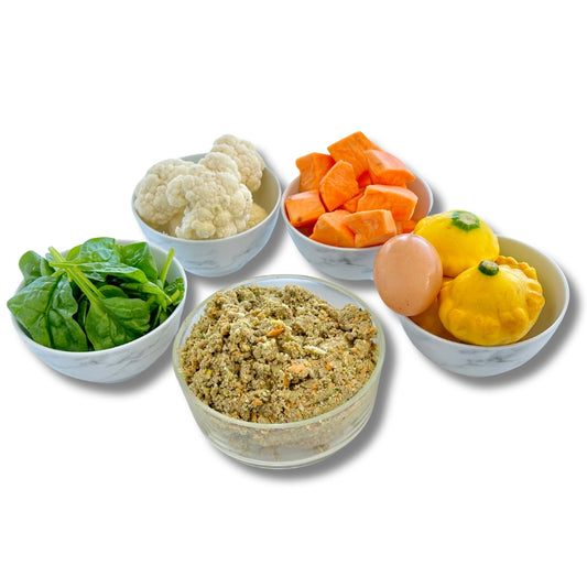 Every meat and vegetable is lightly cooked individually, then mixed in batches to seal in vital nutrients and maximise digestibility. No high temp vats. No additives or colours. By lightly cooking all our recipes it retains nutrients and minimises exposure to harmful bacteria.